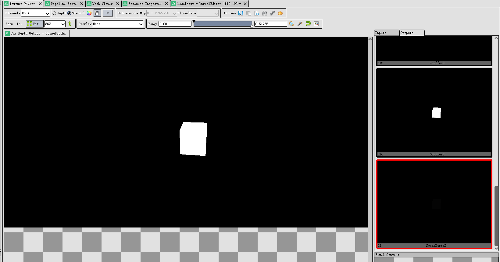 备注:调试的时候遇到一个很麻烦的bug,VS输出的SV_Position值有问题,是NAN导致结果出错。目前排查到的原因是LocalToWorld矩阵的值有问题,具体是哪步的值开始传出问题的还没继续排查。因此把Pass改成在BasePass的时候调用了(这个时候的值没问题)。找到原因了,和后处理的顺序有关,把相应的Pass的顺序提前就好了